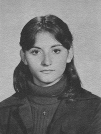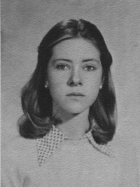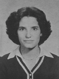 Ágil reportera de “Ente”. En los exámenes hacía gala de la vista de águila que tenía. En cierta ocasión, llegó tan “bien preparada” a la prueba de Matemáticas que Leandro la mandó al rincón más partado del salón para que nadie le copiara (?). Durante las “escasas” horas libres que tenía, se iba al café Córdona a “estudiar”. Cuatísima de Lety, le gustaba contar sus aventuras en Filosofía. Consumada nadadora (?), su mayor ilusión era competir con Mark Spitz. Las horas de laboratorio le provocaban náuseas, y de vez en cuando (?) desaparecía “como por arte de magia”. Excelente compañera y amiga.