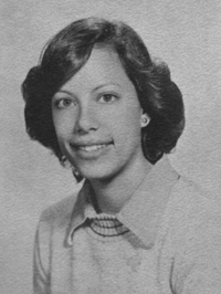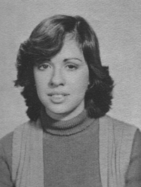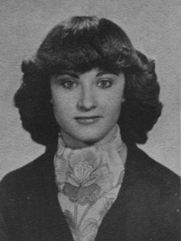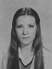 Muy trabajadora y estudiosa, no perdía ninguna hora libre sabía aprovecharlas de la mejor forma (tejiendo o en el café). Se distinguió por se la mas previsora de la clase, hacía canastitas y todo tipo de curiosidades, por si la psicología no producía ($). Famosa por su buen sentido del humor, en clases de psicología y matemáticas sacaba unos chistes buenísimos. En ocasiones se le veía con Lola, Ma. Elena y rarísima vez (?) con Arruti, Cham y asociados. Compartía con muchos del salón el gusto por la máquina y la filosofía y entre sus más agradables recuerdos están las pruebas de C.P.S. Cuando se “aburría en clases” sacaba su campanita y con ella también entretenía a Angela Lombrozo. Laureada basquetbolista y volibolista, fué nominada para el título de “deportista del año”. Gran amiga y jaladora compañera.