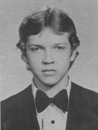 La mascota del salón, alias:”Monsieur Pillaud”, “Payo”, “Grillo”, “telo”, “Baby” (Doll). Jugador empedernido, buen delantero, se acomodaba muy bien en las varillas de los futbolitos, con su entrenador Conrado. Cuando lo llevaban a la Sala Charles Chaplin, nunca tuvo problemas de admisión (en las matinées). Frases célebres: “Que Ranger”, “Nooo, ya”. Uno de sus pasatiempos era mata-luciérnagas en los baños de Tapalpa. Canciones preferidas: “Querido Amigo”(?) y “La Ramona”. Huía de Gigí y de Chuy Birotes, cada que los veía por los corredores por temor a que lo pisaran. Cuando quitaron “Risky”, (restaurant infantil” lloró a moco tendido. Compraba su ropa en “El Bebé Inglés”. Esta foto es de su primera comunión, porque no ha ocurrido cambio radical en el susodicho. A la salida del colegio, usaba reflejantes para que no lo confundieran con boyas. Se convirtió en admirador de Luis Vargas cuando sacó MB en el semestral. Quería estudiar Periodismo para mejorar la redacción de “Mi periodiquito de Novedades”. Nunca se perdió un programa de “Tierra de Gigantes” (porque siempre ganaban sus pequeños amigos) y desde entonces, mejoraron sus tácticas para treparse a los mesabancos. Su mejor amigo: un niño de 4 años (el hermano de Campanita), pues se sentía identificado con él. Mayor temor: que una mosca se le metiera en la nariz. Buen compañero como pocos y buen estudiante, pero mejor amigo.