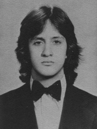 El conocidísimo “Chenco”, hermano menor de Rocky (ver foto), con sus botas milenarias como esquíes (lisas) y su morral. Tenía una greña a la “rompan filas”. Fanático de la música Rock (Kiss), la chamarraw de papel y las patinetas. Color favorito el “verde moco” ya que lo descubrió él mismo en el laboratorio de Quimica. Admirador de ANArquímides. Frases favoritas: “Bravo Idiota”, “vall-monos”, sente-monos”. Tenía una risa muy peculiar: como sapo tartamudo. Joss siempre le festejaba sus chistes para que no se agüitara. Le gustaba mucho los pantalones de casimir (?) (nomás fué visto con unos puestos cuando se fué a tomar la foto de la Memoria). El día que llvó zapatos al colegio, todo mundo se preguntaba si se había vuelto loco o si estaba enfermo de gravedad, ya que nunca fué visto sin sus botas milenarias, o sus tenis de bolero. En su insearable morral de mezclilla, se podía encontrar desde una calculadora hasta una chamarra de papel. Se caracterizó por sus jocosos chistes. Vendedor empedernido, vendía empanadas, huacales y hasta miel de abeja. Sólo fumaba cigarros ajenos, o Carmencitas (que eran de los únicos cigarros que compraba). Admirador del C.A.I.C., nunca se perdió un paseo. Destacado jinete (de burro) nunca se cayó de su montura. Su mayor temor, que le prendieran fuego a su adorada chamarra de papel. Junto con la Canaria, fundó el Pullmon´s le Club. Miembro adicto de la terraza de BEETHOVEN. Buen estudiante, buena bestia y mucho mejor amigo.